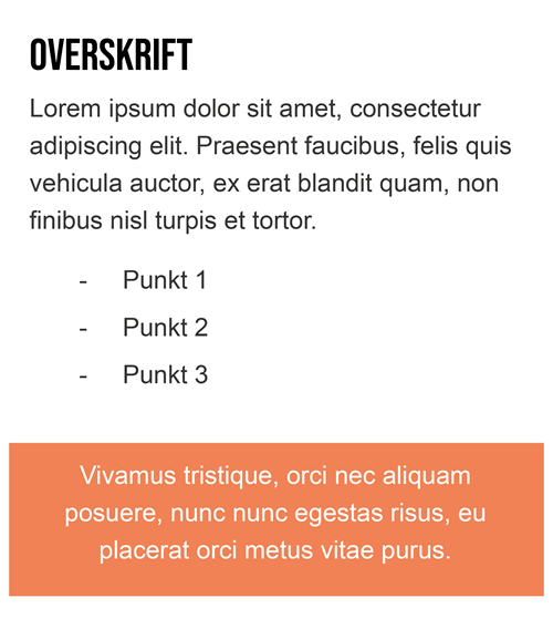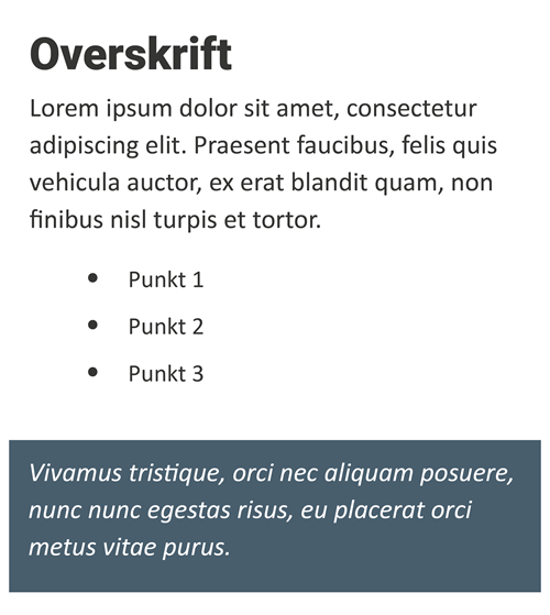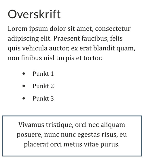 En overskrift ender derfor nødvendigvis ikke med at se ud som den gør i back-end, og tilsvarende er der andre indholdstyper hvis design og/eller funktion kun fremtræder af front-end visningen.