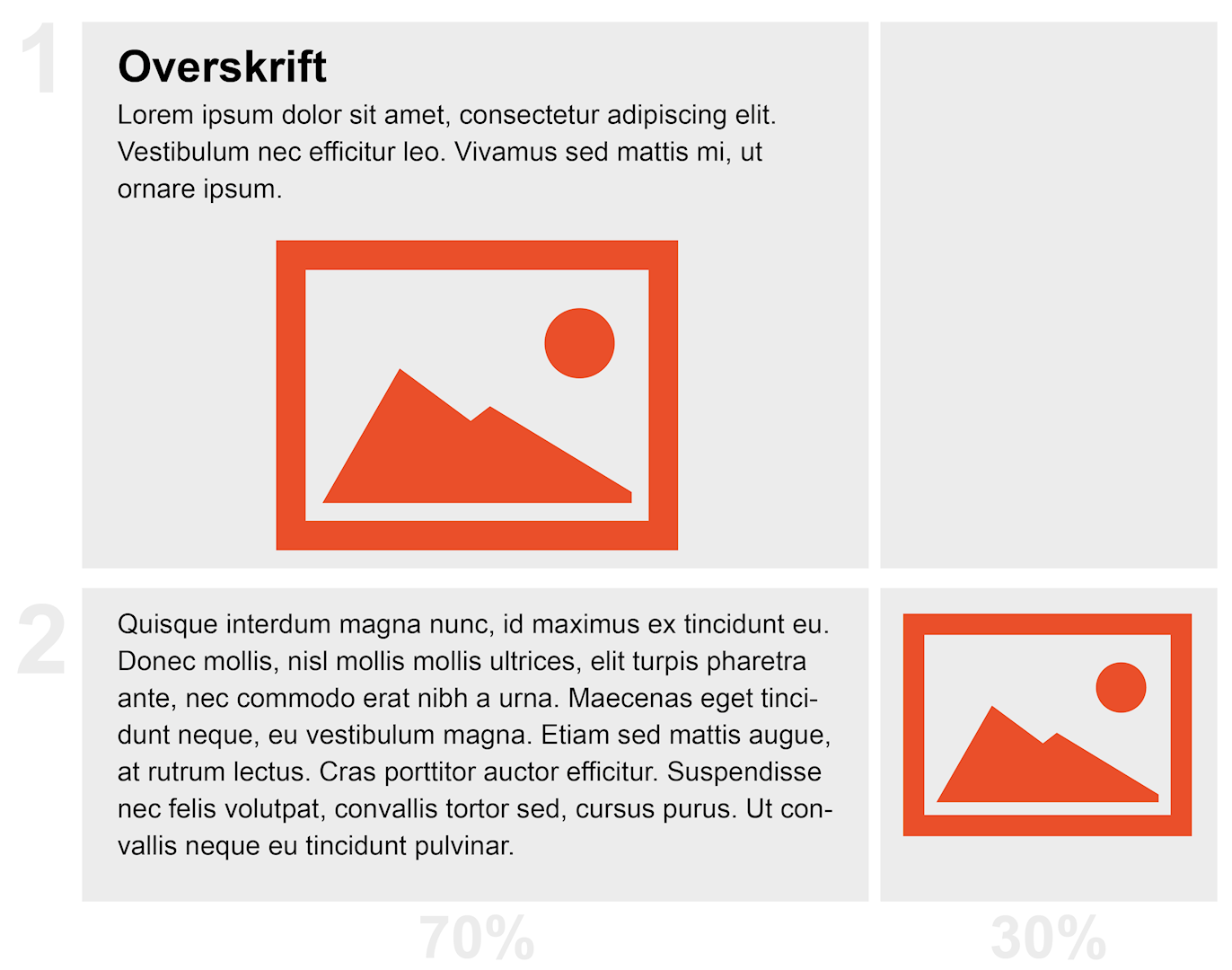 Layoutet er lavet med to rækker opdelt i 70/30.