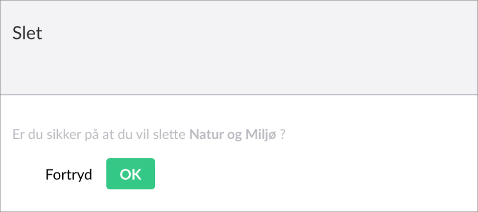Klik på "Slet" i panelet der fremkommer. Herefter bekræftes sletningen ved at klikke på "OK".