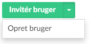 Nye brugere kan oprettes med knappen "Invitér bruger" eller med funktionen "Opret bruger", der tilgås via. pilen på førnævnte knap.