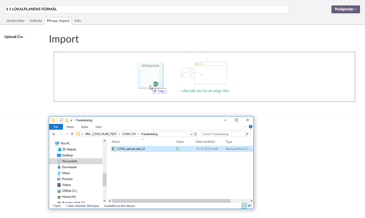 For at kunne importere fraser til COWI PLAN er det nødvendigt at arrangere sine fraser i et Excel ark, som efterfølgende kan uploades.