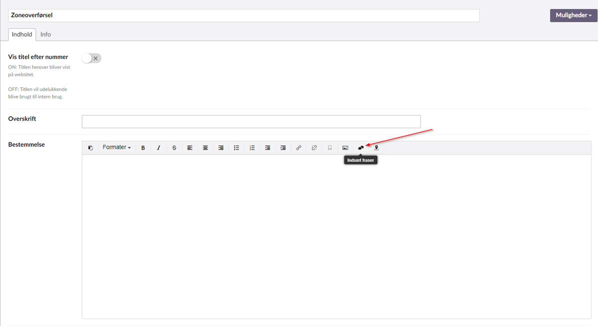 Skridt 2 - Vælg én eller flere fraser som skal indsættes.