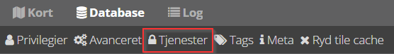 Der oprettes i QGIS forbindelse til WFS-tjenesten for den database der arbejdes i. WFS-linket kan findes i GC2 under fanen "Database" ved at klikke på "Tjenester".