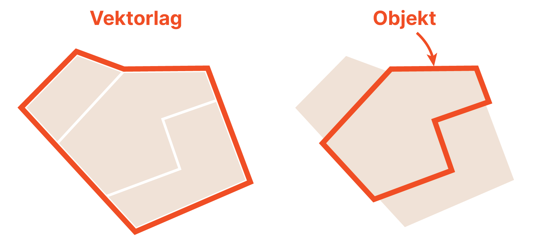 Når der arbejdes med et datasæt i et GIS-program kaldes dette for et vektorlag. Laget kan bestå af én til flere objekter, hvor et objekt kan være enten: