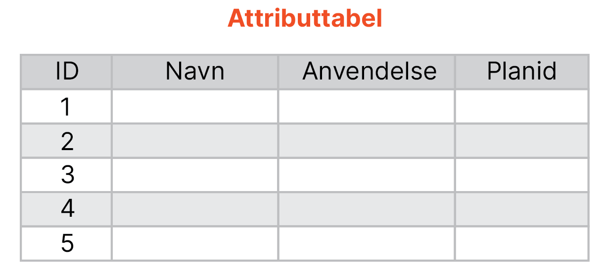 Til et vektorlag er der knyttet en attributtabel. Denne kan indeholde yderligere oplysninger om hvert objekt.