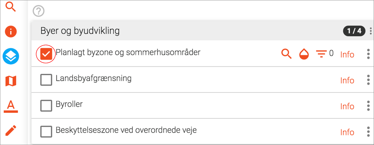 - Klik på "Lag" i sidemenuen, herved fremkommer tilgængelige lag inddelt i kategorier