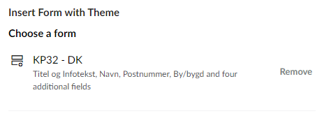 Under den beskrivende tekst tilføjes indholdstypen "Form". Heri vælges den passende skabelon ud fra de forudbestemte muligheder: